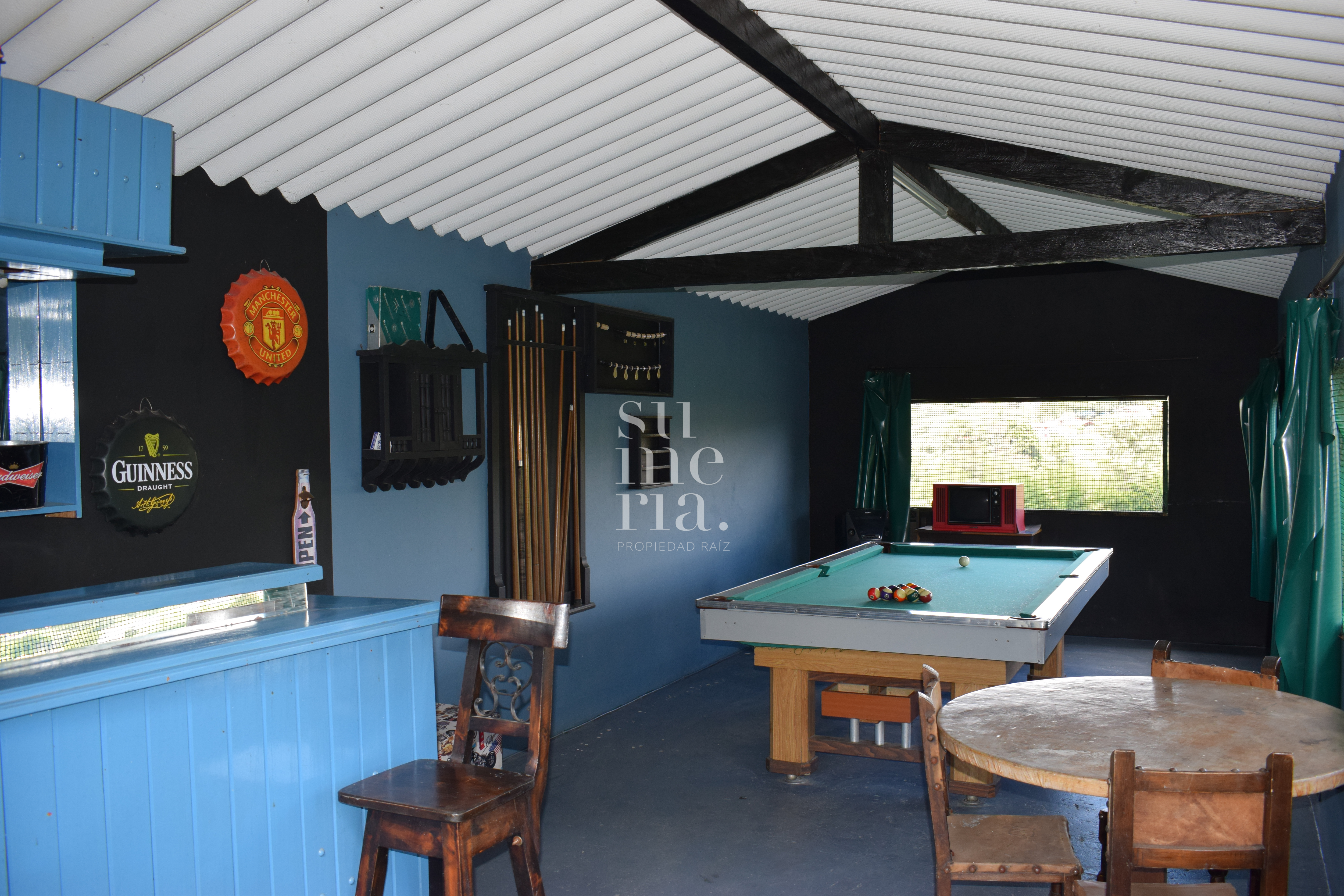 Zonas comunes: sala de juegos mesa de billar., cancha de futbol y kiosko.