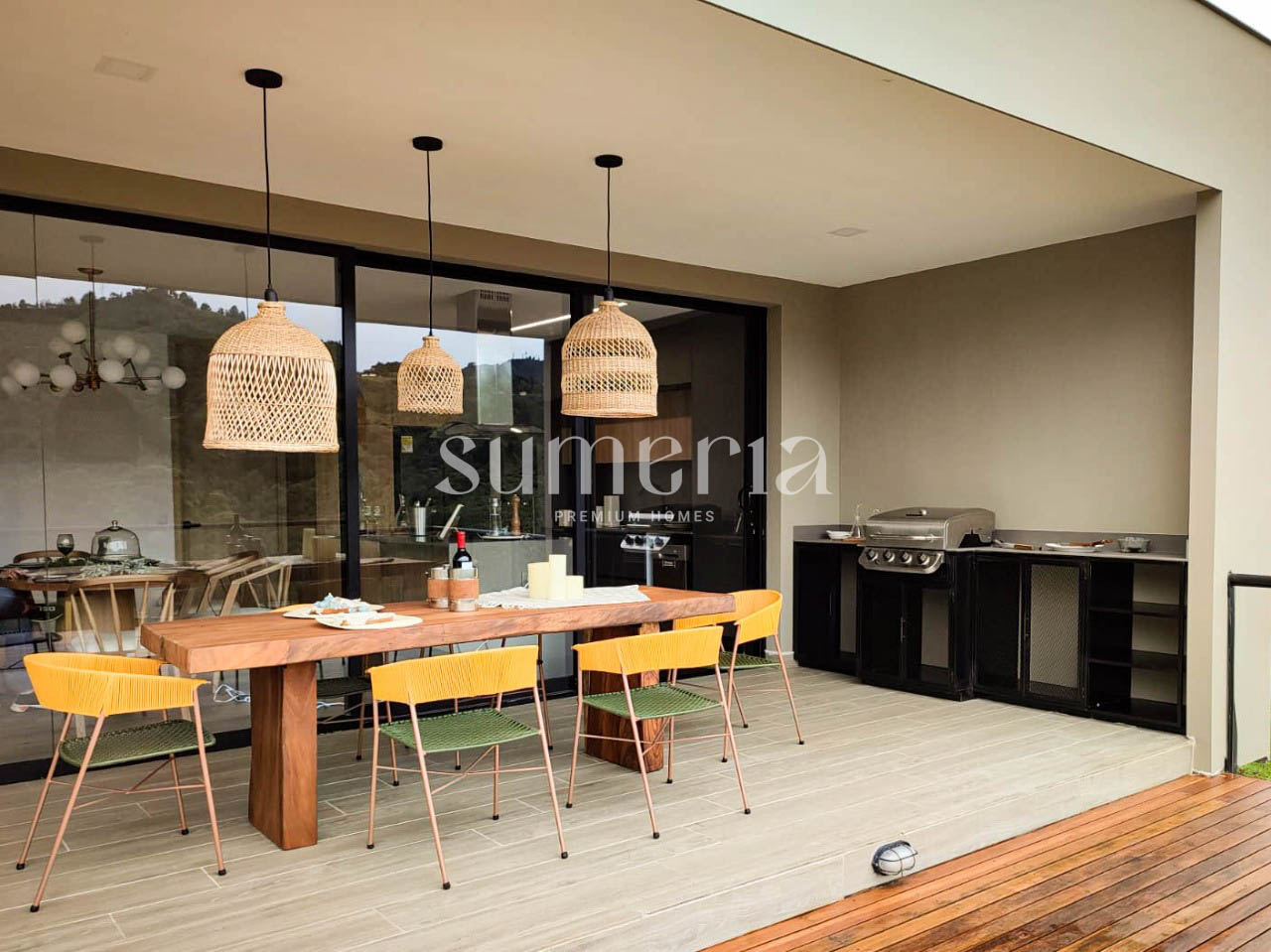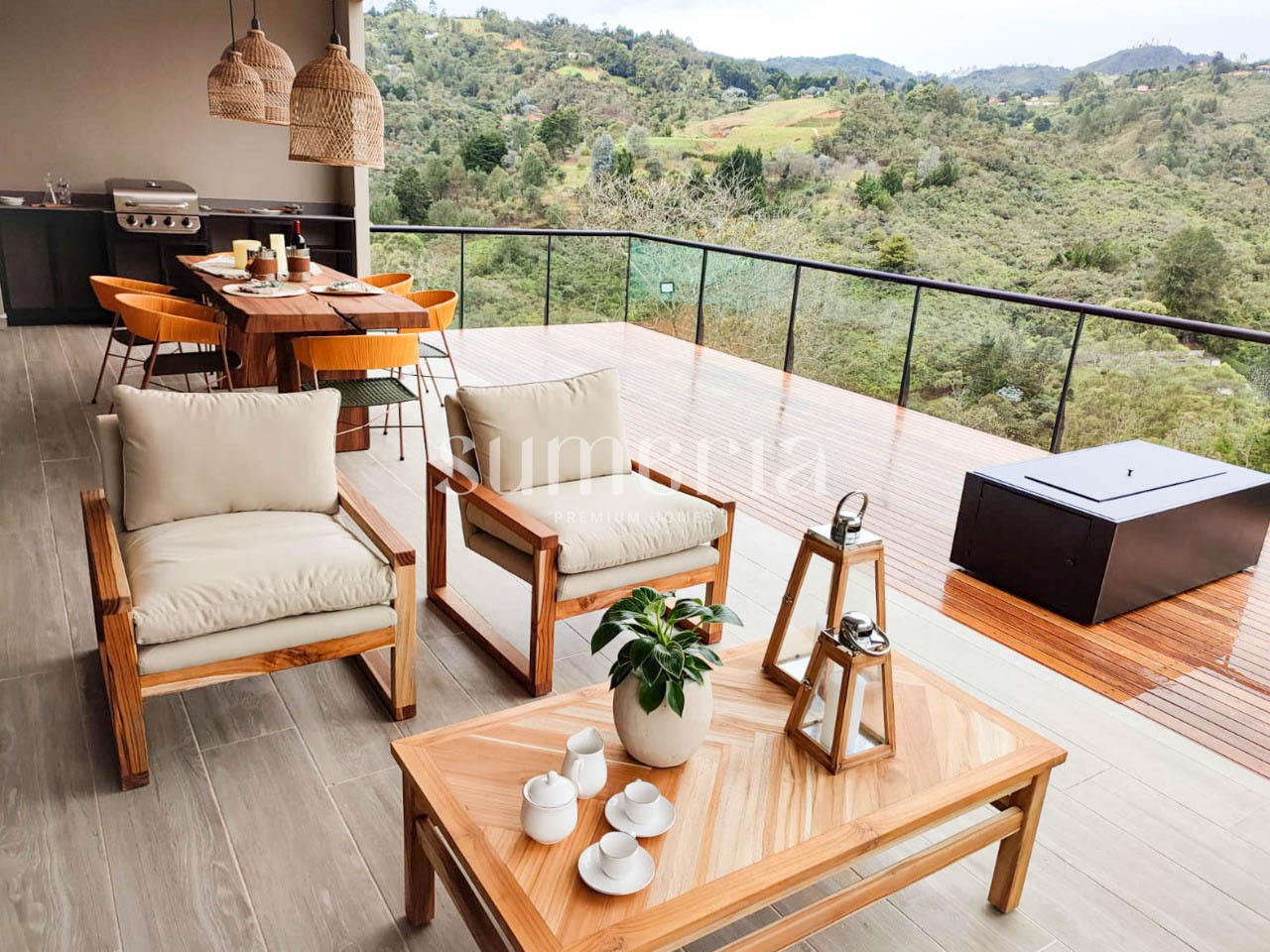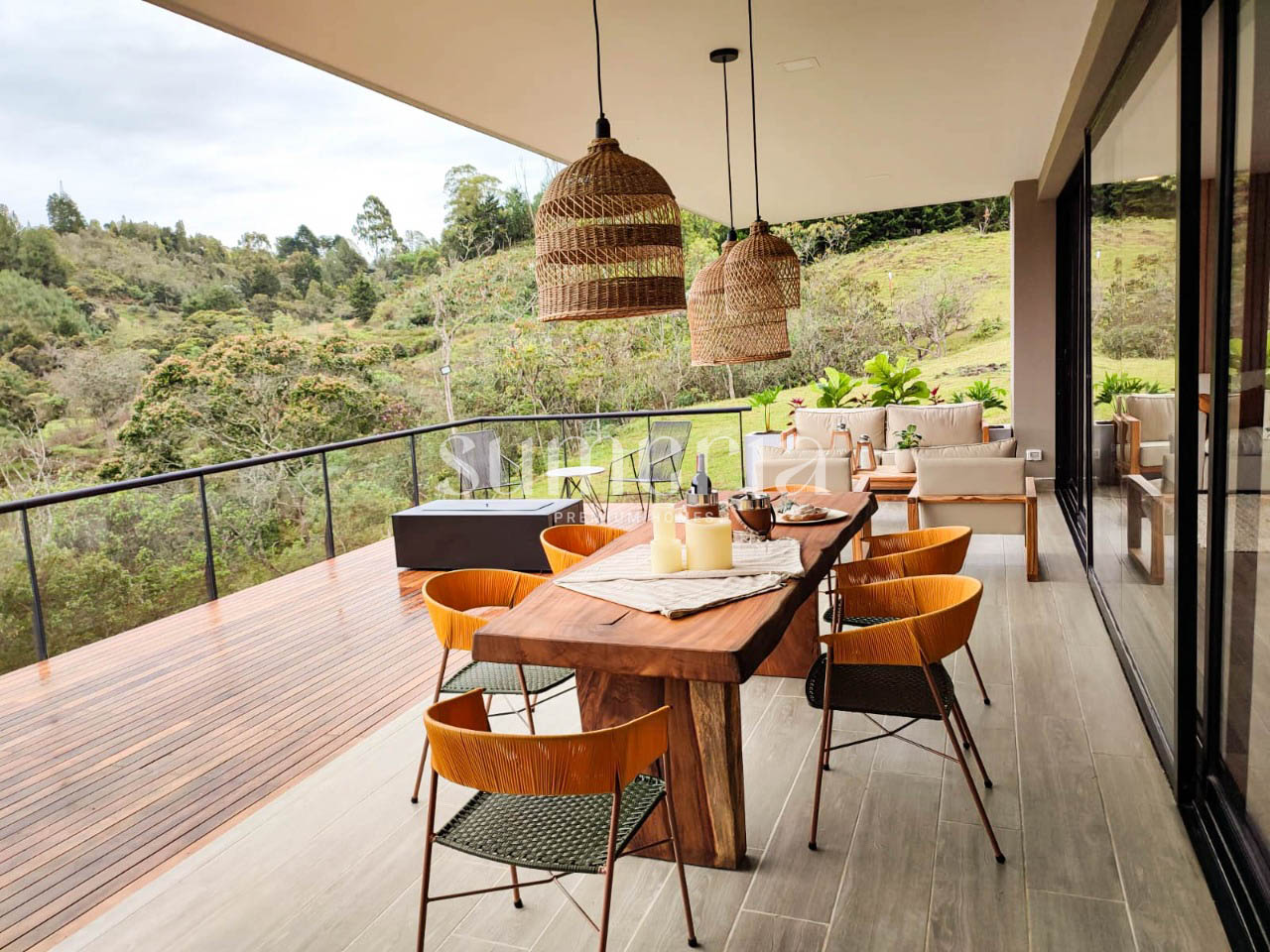 El condominio tambien cuenta con una zona común que incluye espacio al aire libre.